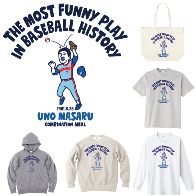 宇野勝氏コラボレーションアイテム 「球史に残る珍プレー・宇野ヘディング事件」をオンラインショップコンビネーションミールにて発売しました!